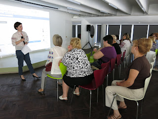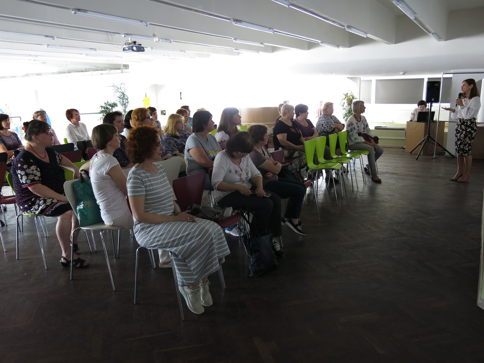 Керівники відділів Наталя Виноградова та Катерина Зайцева коротко розказали, як замінити традиційні, але малоефективні форми роботи (наприклад, виставки книжок з фонду до певних календарних дат) більш результативною власною імпровізацією – наприклад, п’ятничні “