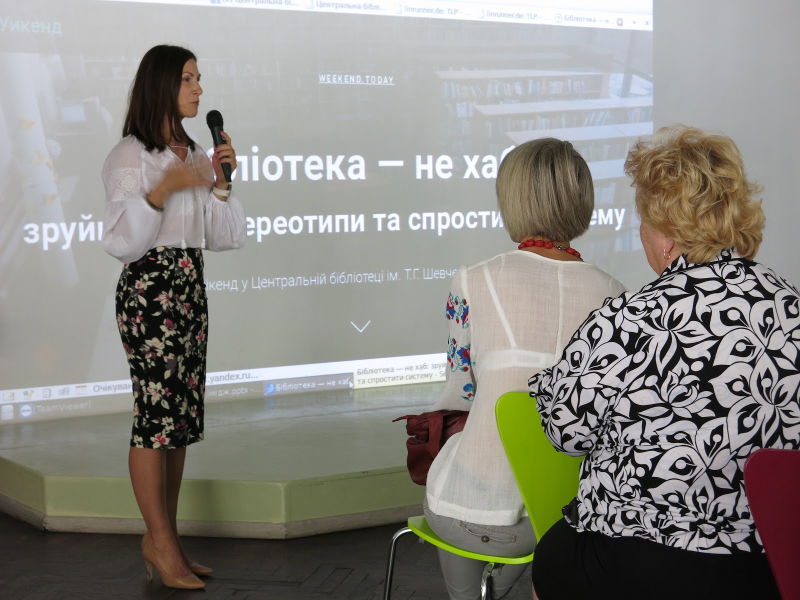 Обидва заходи мали формальну, так би мовити, пленарну частину, що складалася з виступів директорки #БІБЛІОТЕКА Яни Біленко і керівників відділів Наталії Виноградової та Катерини Зайцевої, і частину неформальну – спілкування за чаєм-кавою. Ми встигли обговорити з колегами доволі широке коло проблем – від суто професійних питань статистичної звітності та запровадження електронного читацького формуляра до глобальних фінансових питань і подолання відставання бібліотек від решти закладів культури, адже і музеї, і театри вже встигли технологічно оновитися і запровадити чимало методологічних та інформаційних новацій, аби “залізти у смартфони” до своїх потенційних глядачів та відвідувачів.